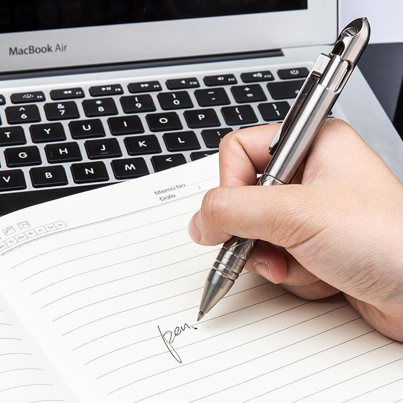 The Tenvellon Titanium Tactical Pen combines functionality and durability, making it an ideal EDC tool. Made from high-quality titanium, this pen serves as both a reliable writing instrument and a practical self-defense tool. Its attack head allows for emergency window breaking, while the sleek design ensures comfort during daily writing tasks.